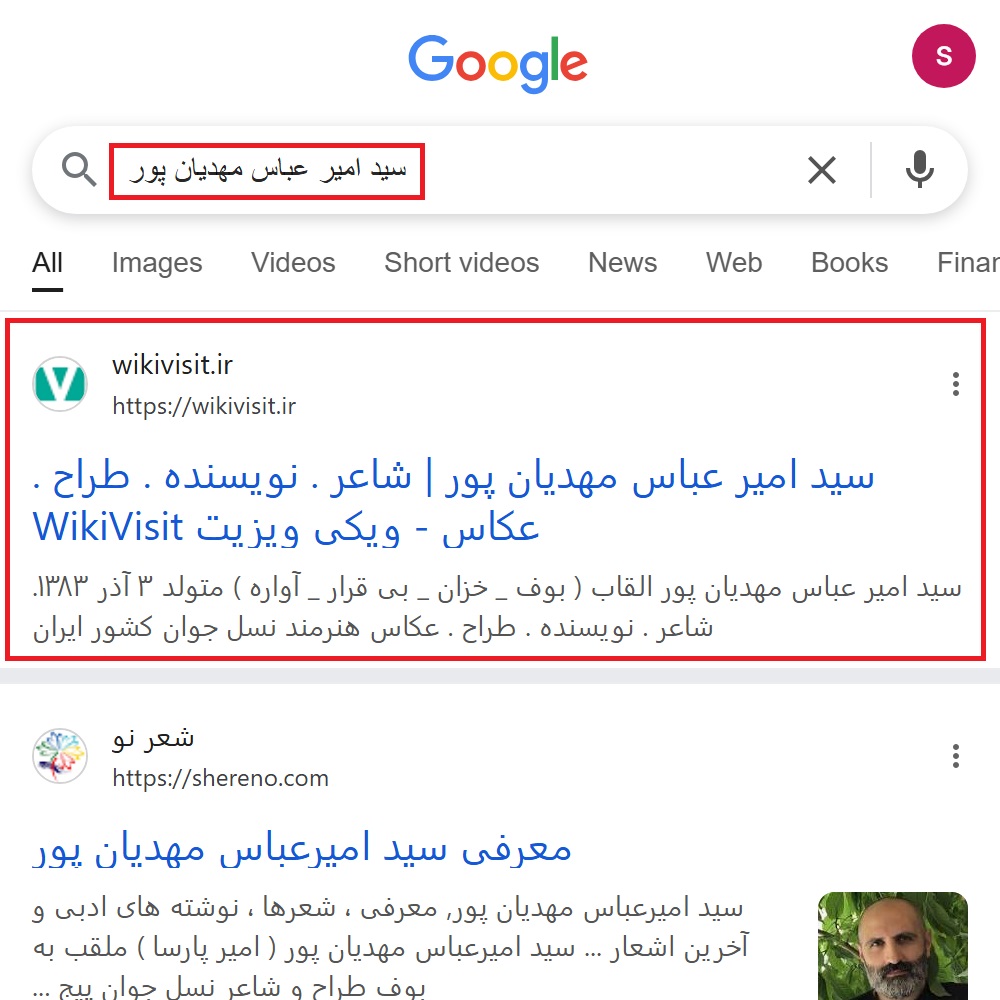 نمونه کار ثبت شعر در گوگل